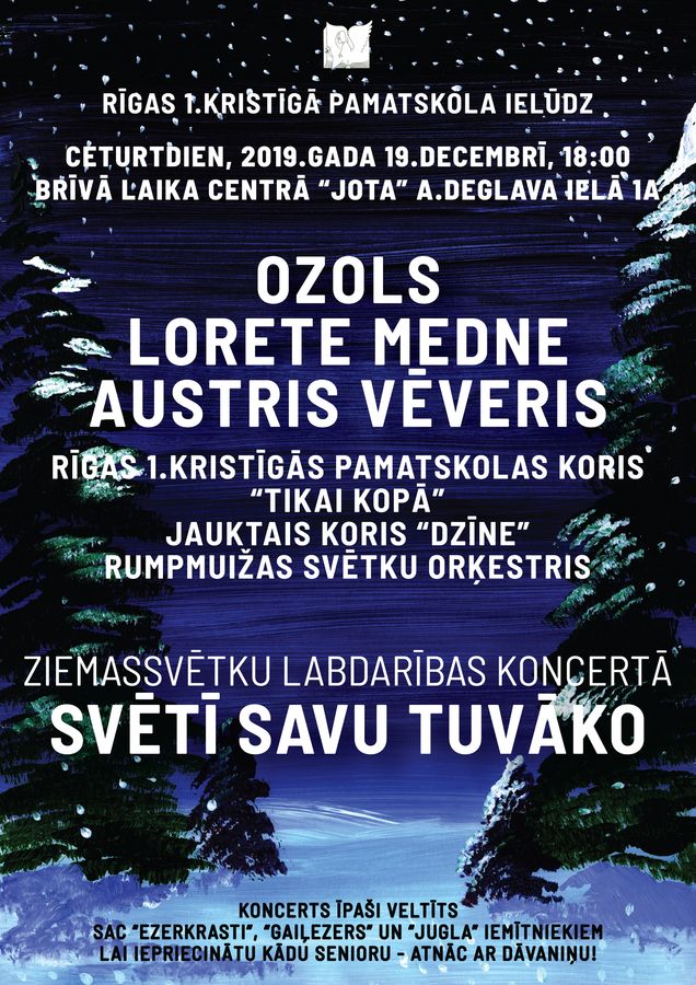 Ieskats Rīgas 1.Kristīgās pamatskolas Ziemassvētku labdarības koncertā “Svētī savu tuvāko”, kas notika 2019.gada 19.decembrī brīvā laika centrā “Jota”.