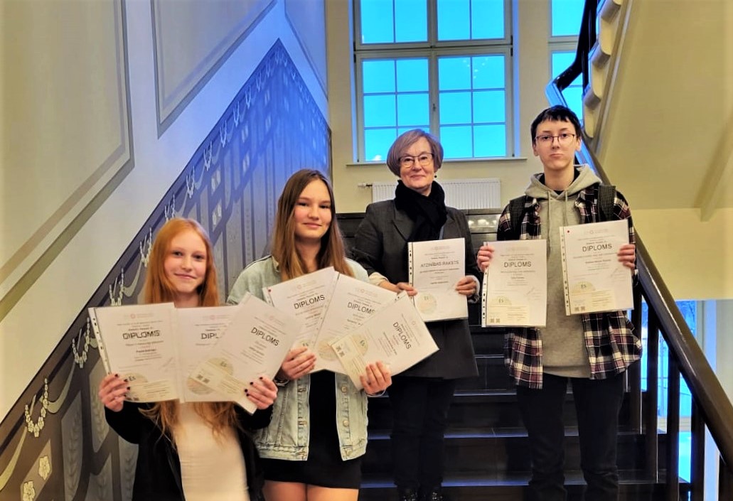 Kultūras pilī “Ziemeļblāzma” šodien noslēdzās Rīgas pilsētas vizuālās mākslas konkurss “Ziedonis.Pasaule.Es”. Laureātu vidū arī mūsu skolas skolēni: 1. pakāpes diploms un specbalva Nadīnai Mišelai Piešiņai, Emīlijai Miezītei, kā arī Paulai Batragai, Vanesai Karolīnai Prato; 2. pakāpes diplomi Juliai Frīzenei, Lijai Bāderei, Samantai Šadurskai un Sofijai Savickai. Skolotājai Atzinības raksts. Apsveicam!